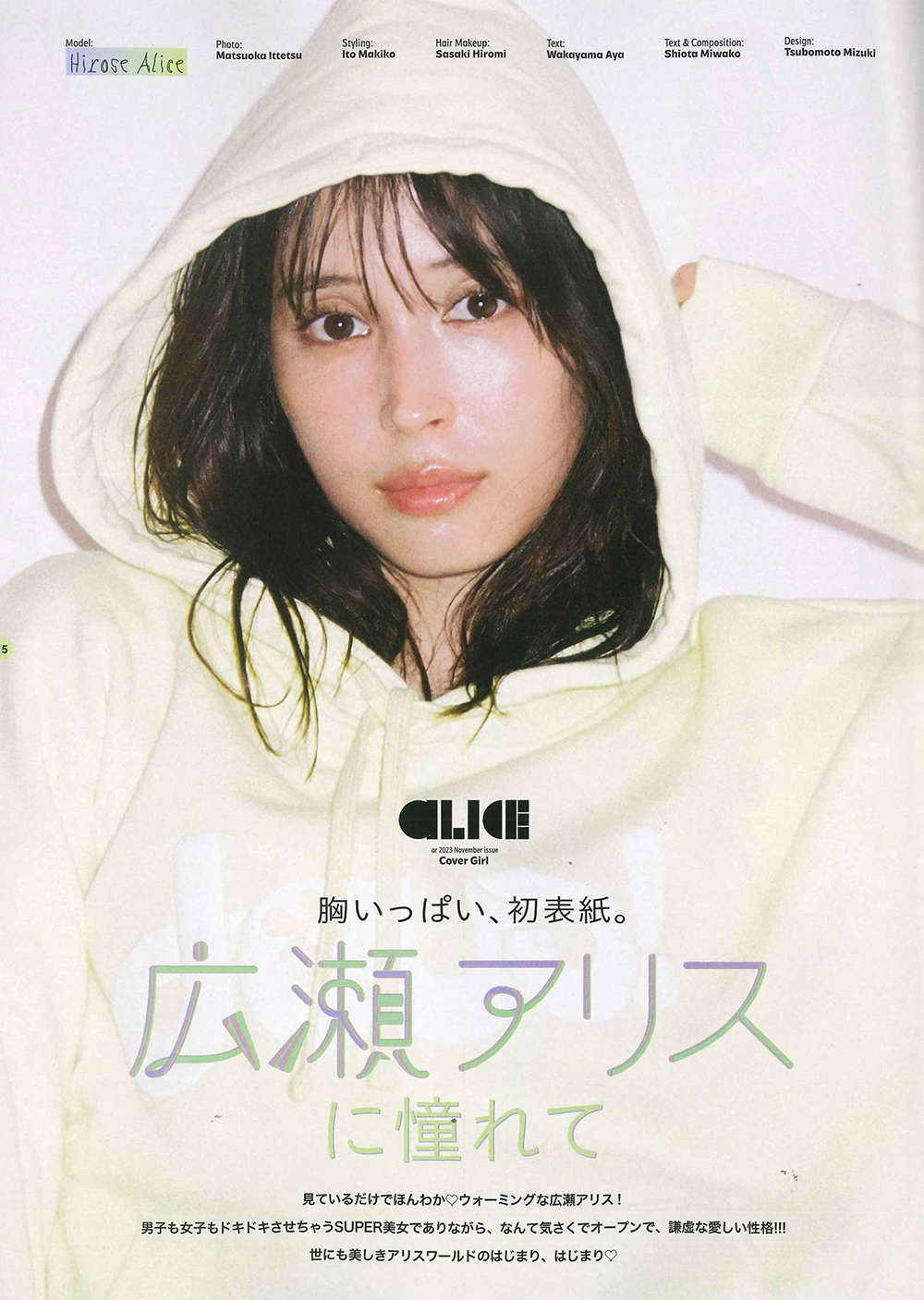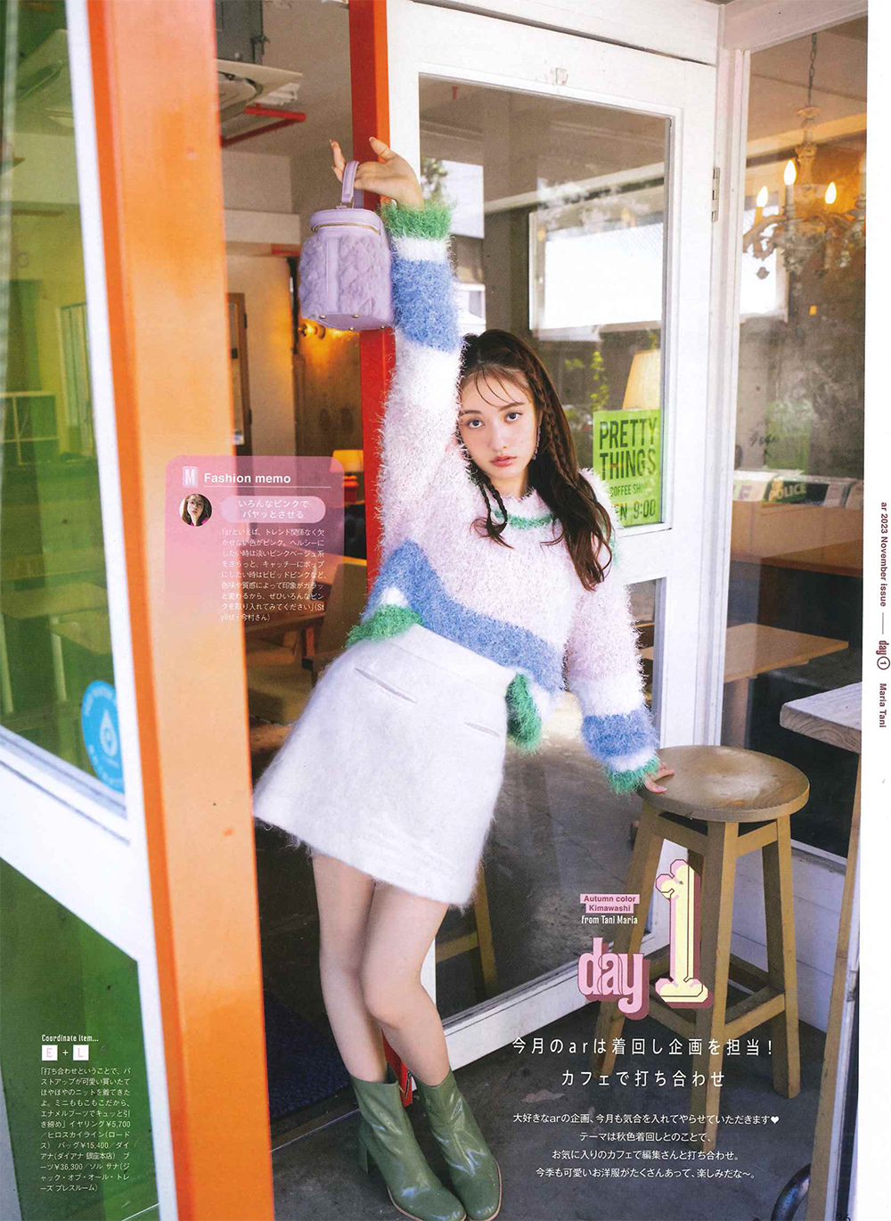 2023年 ar 11月号 表紙にて広瀬アリスさんにDEUS EX MACHINAのフーディ、中ページにてAWESOME NEEDS, Jakke、Mollini、PETA + JAIN、SOL SANA、ROLLA'Sが掲載されました。