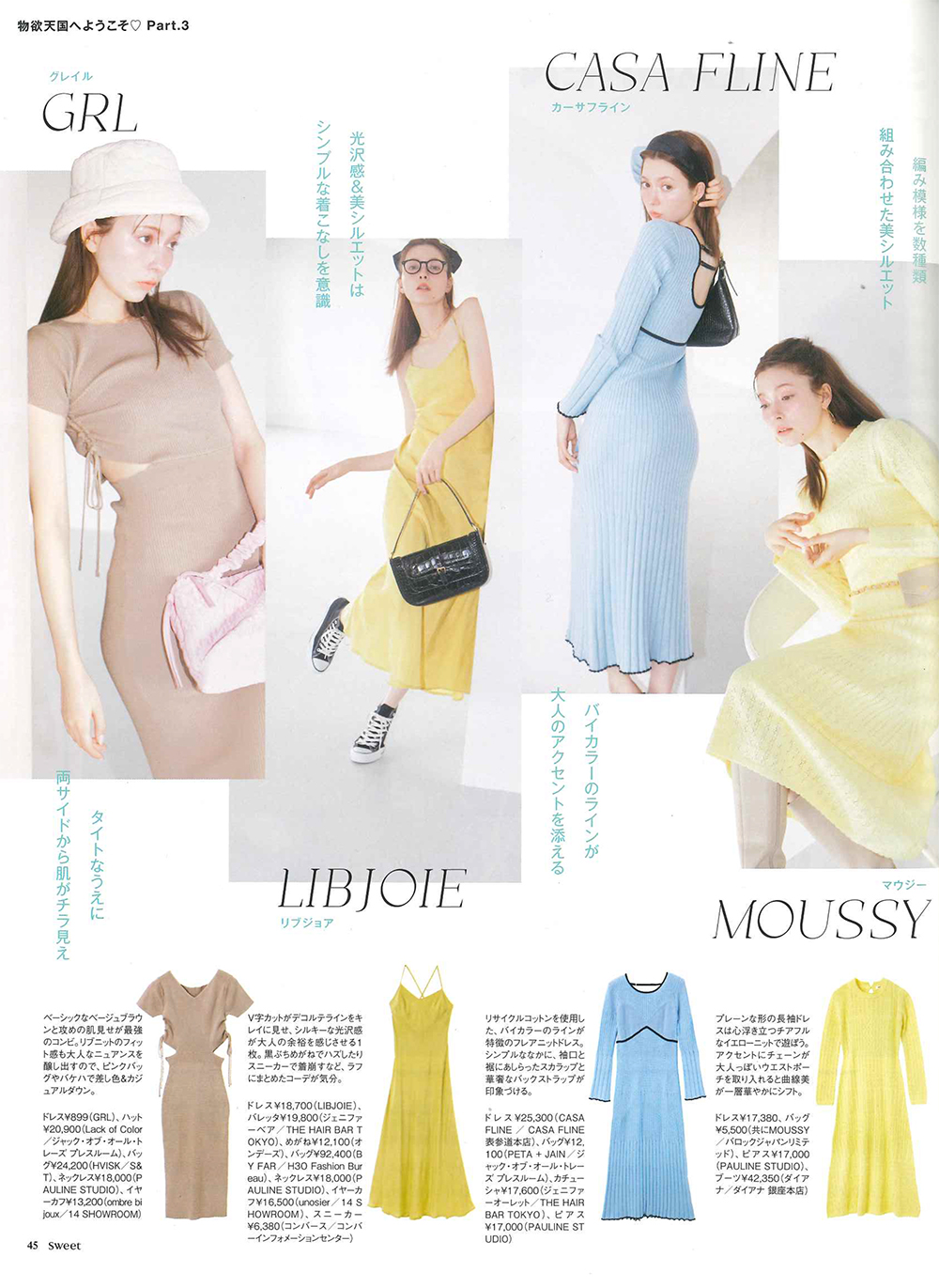 2023年 Sweet 4月号にて 、Lack of Color, PETA + JAIN, ROLLA'S, jakkeが掲載されました。