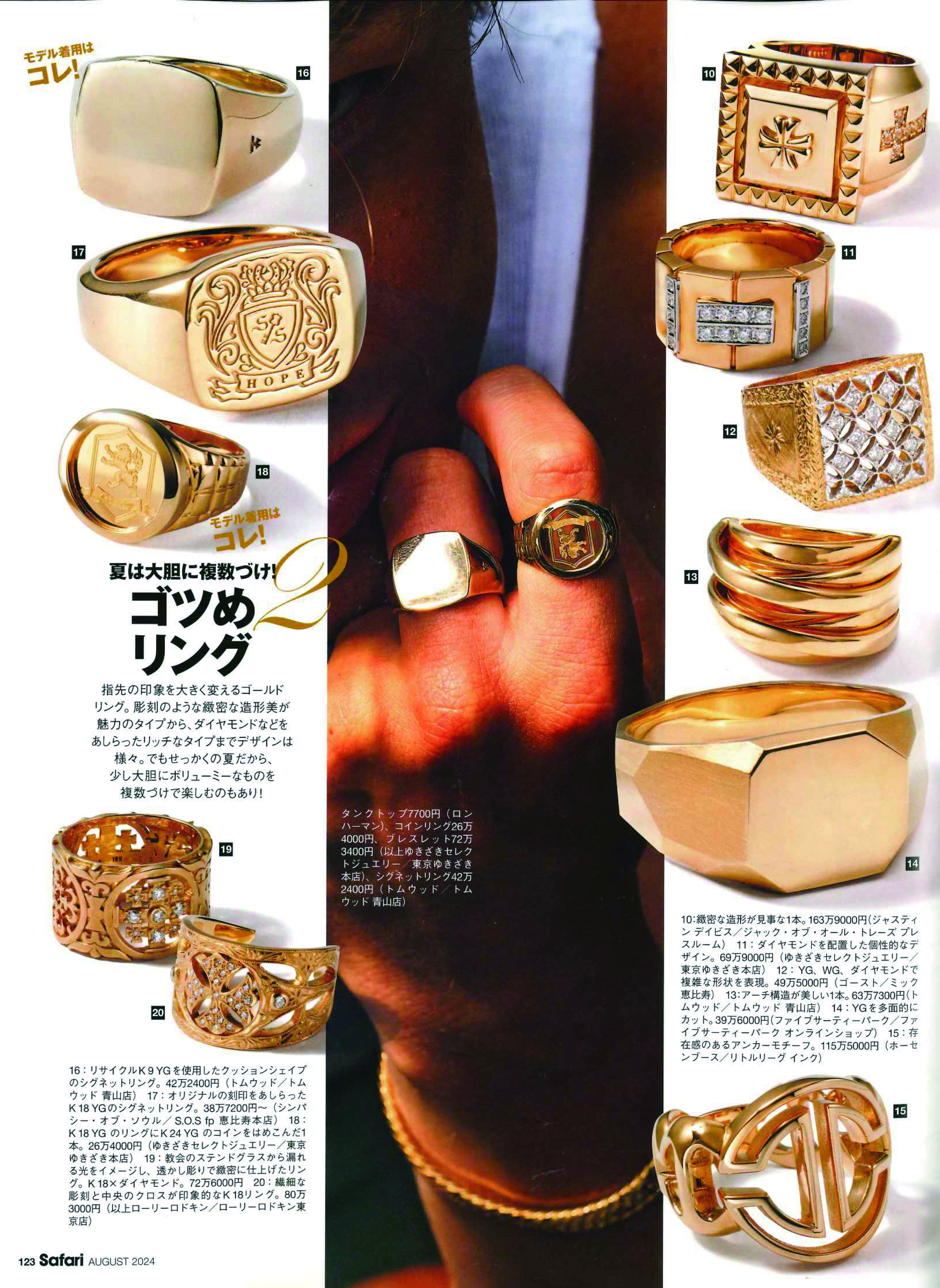 2024年 Safari 8月号6/24発売にて、JUSTIN DAVIS ジュエリーが掲載されました。